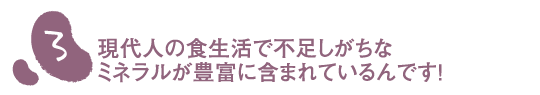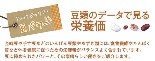 あずきやいんげん豆にはカリウム、カルシウム、鉄や亜鉛など、現代人の食生活で不足しがちなミネラルが豊富に含まれていることを知っていましたか?ミネラルは、私たちが生きていくのに必要な生理作用、酵素作用、代謝調節作用等と密接に関係しています。例えば、カリウムはエネルギーの代謝やホルモンの内分泌を促し、鉄は貧血予防、亜鉛は味覚や嗅覚障害の改善に効果があります。また、カルシウムは丈夫な歯や骨を作りだす大事な要素。身体の細胞の多くの働きや活性化を助けるだけでなく、出血時の血液凝固にも効果を発揮しているんですよ。 |