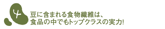 豆にはたっぷりの食物繊維が含まれていて、その量は食品の中でもトップクラス!特にあずきやいんげん豆には100gあたり約20gの食物繊維が含まれていて、さらに加熱調理することにより1.5倍から2倍まで増加します。食物繊維は抗便秘作用や大腸がんを予防することが知られており、あずきやいんげん豆の食物繊維にも整腸作用やそれに伴うコレステロール低下作用があることがわかっています。食物繊維の1日あたりの摂取目安量は成人で20〜25gと言われていますが、厚生労働省の国民栄養調査では、現代の日本人の食生活ではたったの15g程度しか摂取できていないという結果が出ています。つまり、普段の食生活に25〜50gのあずきやいんげん豆料理を加えるだけで、不足分の食物繊維を十分補えちゃうというわけなんです! |