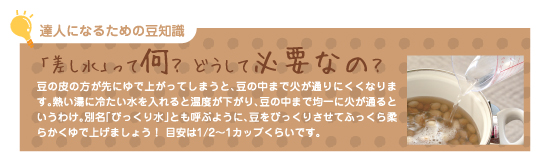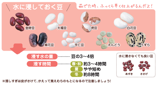 乾燥豆の調理はまず、戻してやわらかくゆでることから始まります。「難しそう〜」「面倒だわ〜」と思ったあなた!実はポイントをおさえればとっても簡単に豆料理が楽しめちゃうんですよ。乾燥豆のゆで方をマスターして、今日からあなたも豆の達人になりましょう! |