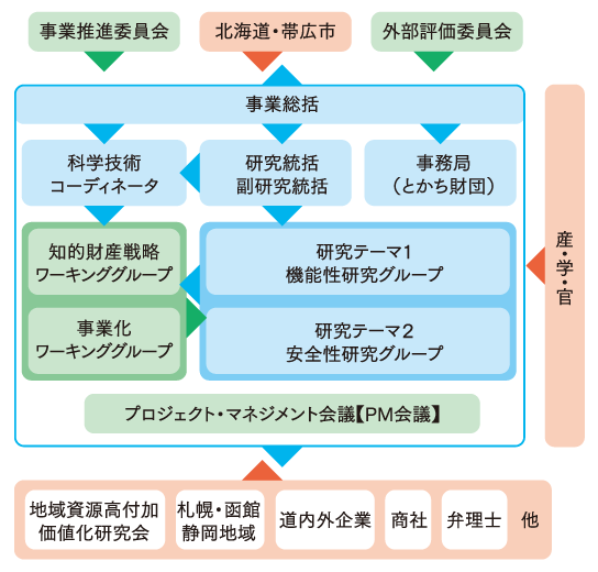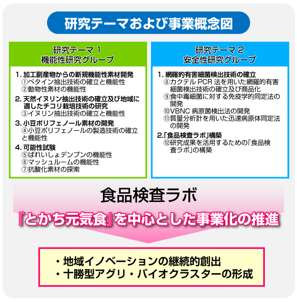 また、「とかち元気食」を中心とした事業化を推進しており、この事業推進を通じて、地域のブランド力を高め、消費者の支持を獲得し、国内外での競争に勝ち抜くための技術的基盤を築くことを目指しています。