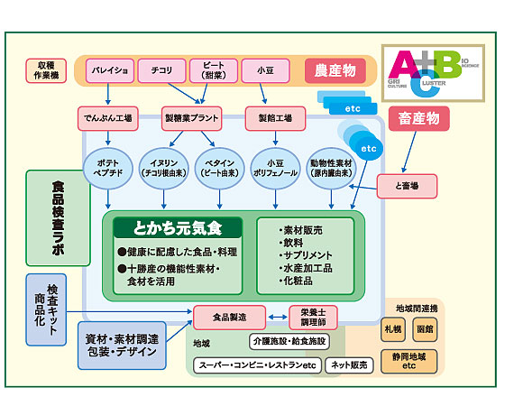 十勝においても、農と食をテーマに、各研究機関、北海道・帯広市などの自治体、そして地元企業の連携により各種の事業が進められています。