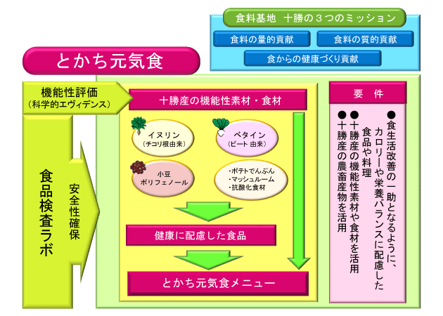 このような「食からの健康づくりの貢献」に基づいて構想したのが、「とかち元気食」です。