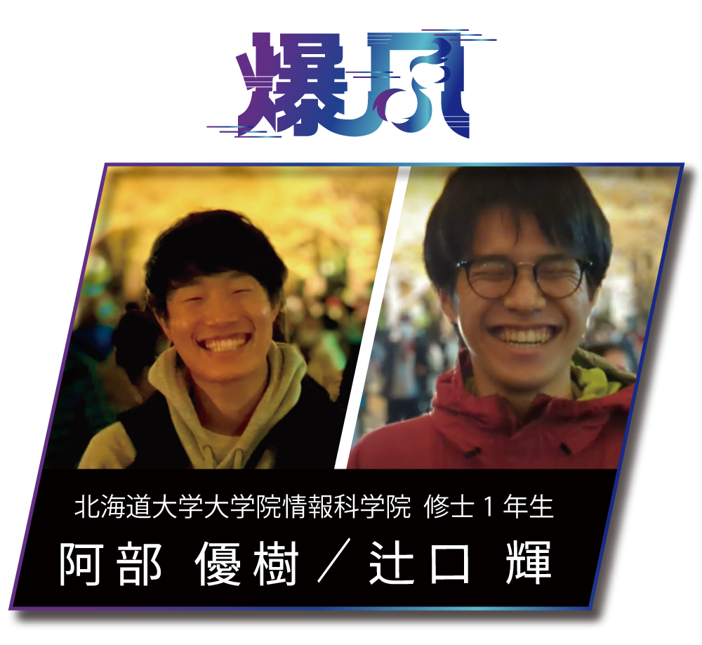 北海道大学大学院 修士1年生 阿部 優樹(アベ ユウキト)/辻口 輝(ツジグチ ヒカル)