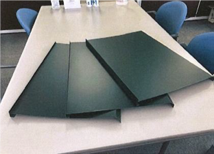 建築物屋根に使用する笠木部材(フラット屋根立ち上げ部を覆うもの)について、板金職人の作業軽減や漏水トラブルを低減する新工法の笠木を開発するため、独自設計による笠木成型機の開発と新型笠木部材の商品化に取り組みました。