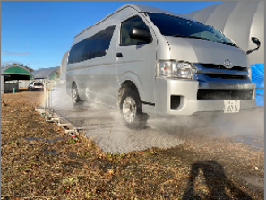 既に販売を開始している定置型車両洗浄装置をよりユーザーが導入しやすい装置として提供するため、小型化・軽量化等の大幅な改良を施し、4tユニック車で搬入・搬出が可能なポータブル装置の開発に取り組みました。