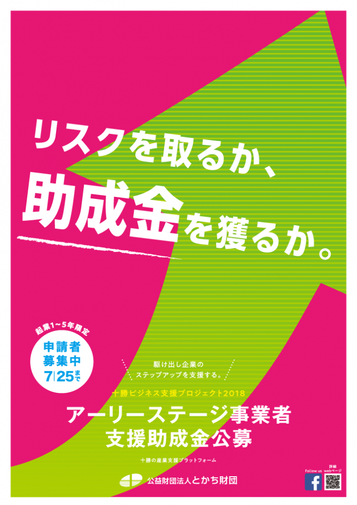 地域の稼ぐ力の創出と、地域経済への波及効果を増大させることを目的に、アーリーステージ(成長初期段階)の企業等の事業のステップアップを支援する助成金事業です。十勝管内に主たる事業所があり、事業開始後1年以上5年以内の事業者が対象です。