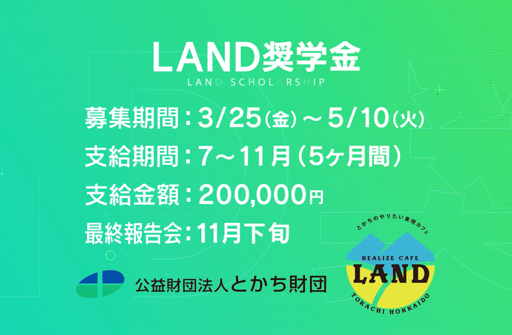 公益財団法人とかち財団が実施する令和4年度「LAND奨学金」の公募を下記の通り開始いたします!