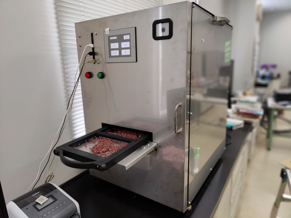 ●スマート農業機械試作品(画像認識とAI技術による豆類検査装置)
