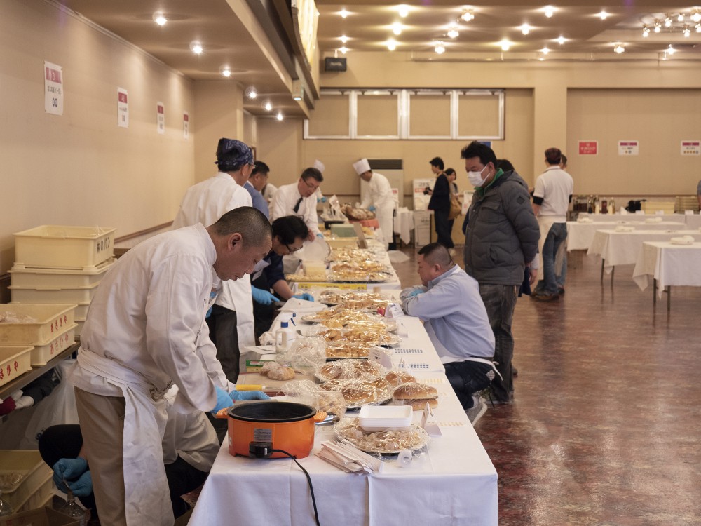 とかち館(帯広市西7条南6丁目2番地)での開催となった本会。試食の準備が粛々と進む中、会場のあるフロアはどんどん賑やかになっていき…5分前倒しで開場となりました!