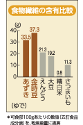 豆にはたっぷりの食物繊維が含まれていて、その量は食品の中でもトップクラス!特にあずきやいんげん豆には100gあたり約20gの食物繊維が含まれていて、さらに加熱調理することにより1.5倍から2倍まで増加します。食物繊維は抗便秘作用や大腸がんを予防することが知られており、あずきやいんげん豆の食物繊維にも整腸作用やそれに伴うコレステロール低下作用があることがわかっています。食物繊維の1日あたりの摂取目安量は成人で20〜25gと言われていますが、厚生労働省の国民栄養調査では、現代の日本人の食生活ではたったの15g程度しか摂取できていないという結果が出ています。つまり、普段の食生活に25〜50gのあずきやいんげん豆料理を加えるだけで、不足分の食物繊維を十分補えちゃうというわけなんです! |