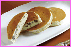 フライパンにバターを入れて熱し、生地を60cc位入れて、丸く形を整えながら弱火で焼きます。きれいな焼き色がついたら返してもう片面も焼きます。表面がパリッと香ばしく焼けたら、中央に竹串をさして見ます。串に生地の生の状態が付いていないと焼き上がっています。 |