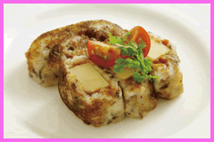 | 2. | 1のいも餅を8等分に分け、それぞれ全体に薄く広げて、ピザソース・チーズを中に包みます。 |