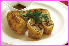 フライパンに多めのサラダ油を入れて熱し、3のカツレツを、転がしながら静かに焼きます。全体にきれいな焼色を付けて、火を通します。 |