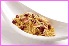 | 5. | フライパンを火から外し、カルボナーラのクリームを加えてよく混ぜ合わせます。塩・コショウで味を調えて、お皿に盛り付けます。上から粗挽き黒コショウを掛けて仕上げます。 |
