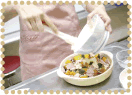 | 3. | グラタン皿にバターを塗り、ニンニクの切り口で香りづけをする。 |
