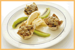 | 6. | 皿にバニラアイス、スライスしたキウイを盛り、5を盛り付ける。 |