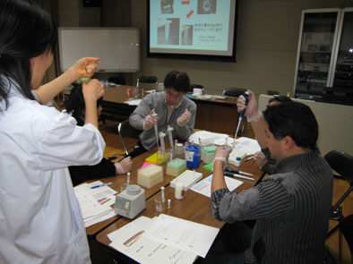 生乳の安全性確保技術について、標記事業における共同研究により開発された下記2種類の検査キットの説明ならびに操作実習を行い、実際の利用について意見交換を実施。