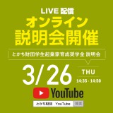 令和2年3月26日(木)に開催しました『とかち財団学生起業家育成奨学金オンライン説明会』の動画を下記のとおりアップロードいたしました。 ライブ配信をご覧になれなかった方はこちらでご確認ください。 なお、ご質問は随時受付しておりますので、お気軽にお問い合わせください。 ※事業説明は1:04:59からです。 動画URL 989center_s