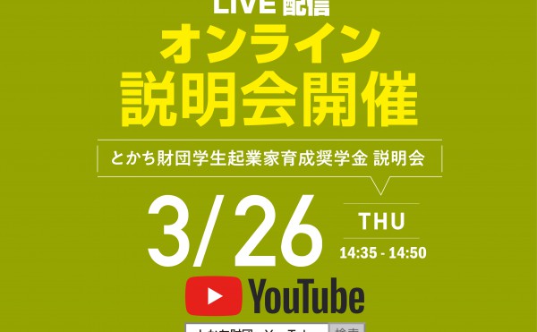 お知らせ 2021-06-269667 令和3年度とかち財団学生起業家育成奨学金の採択者が決定しました! #事業創発注目 #起業創業 #セミナー・人材育成(起業創業) #学生起業家育成奨学金 #十勝ビジネス支援プロジェクト