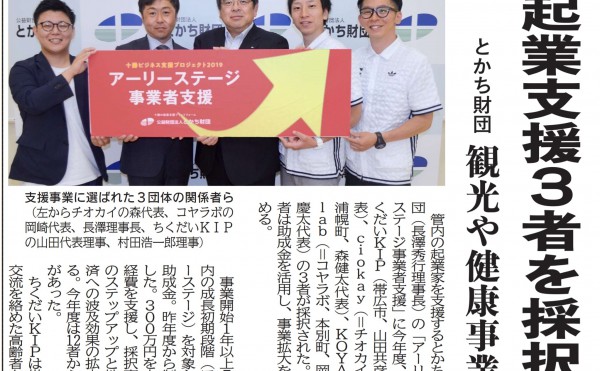 メディア掲載 2019-07-029523 2019年度「アーリーステージ事業者支援」メディア掲載情報(北海道新聞、十勝毎日新聞) #北海道新聞 #十勝毎日新聞 #アーリーステージ事業者支援 #十勝ビジネス支援プロジェクト #理事長 #事業創発注目