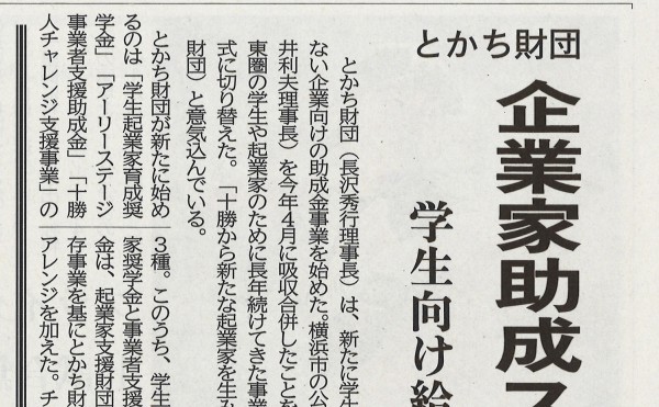 メディア掲載 2018-10-177968 「とかち財団 学生起業家育成奨学金 採用者決定」メディア掲載記事(北海道新聞・十勝毎日新聞) #学生起業家育成奨学金起業創業 #セミナー・人材育成(起業創業) #北海道新聞 #十勝毎日新聞 #事業創発注目