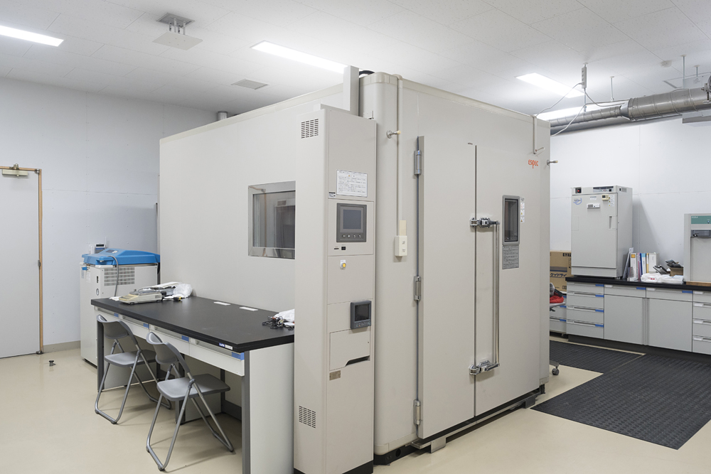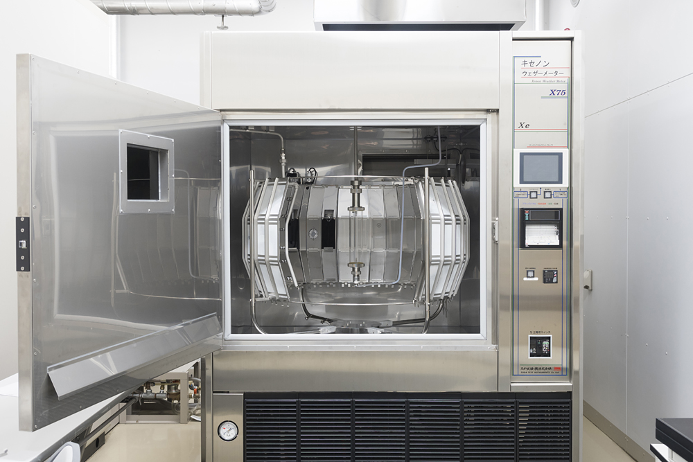 耐候性試験機として試料に対し人工的な日照や雨を用いて評価する装置